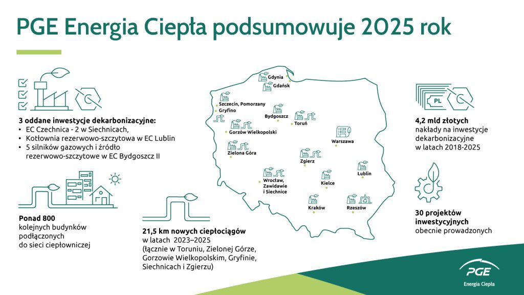 PGE Energia Ciepła produkuje ciepło dla ponad 2 milionów mieszkańców w 16 polskich miastach, w tym dla Gdańska, Gdyni i Sopotu. W roku 2025 Spółka kontynuowała transformację sektora ciepłowniczego w kierunku nisko- i zeroemisyjnym.