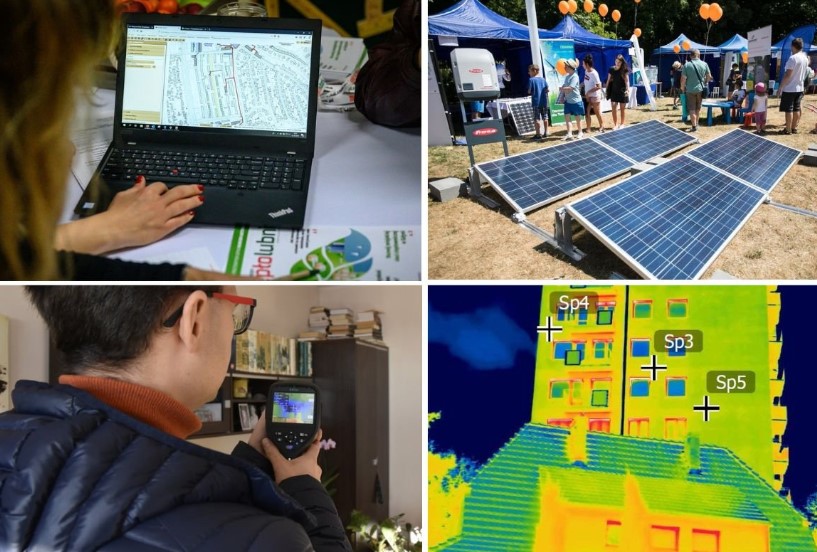 Przykłady działań realizowanych w ramach „Ciepłolubnych”: konsultacje społeczne dot. przyłączeń do sieci ciepłowniczej, plenerowe wydarzenia energetyczne, darmowe inspekcje termowizyjne dla mieszkańców Gdyni (fot. archiwalne / Dawid Linkowski / Karol Stańczak / Kamil Złoch)